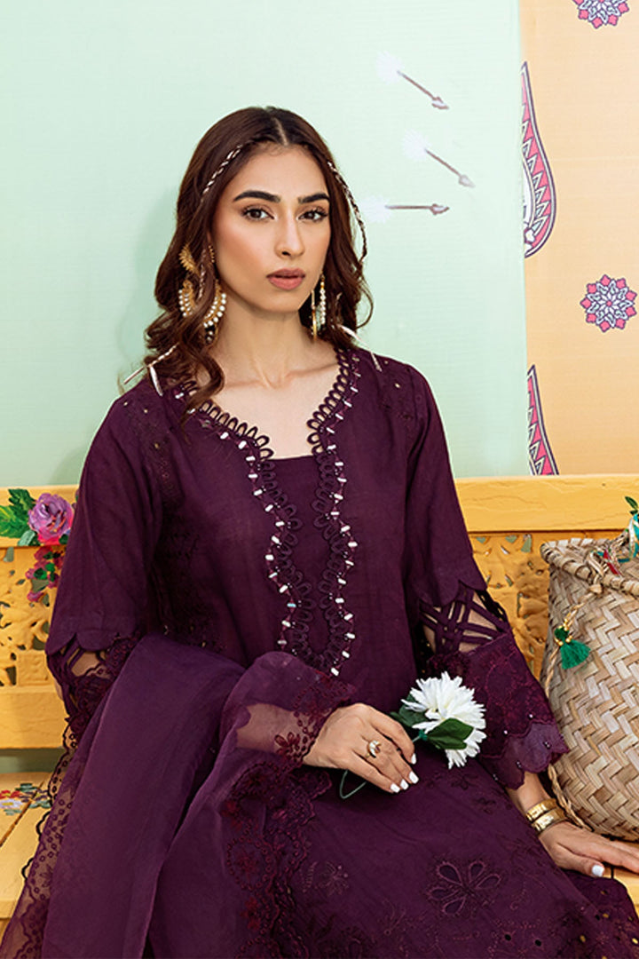 - 3 Piece Ready-To-Wear Embroidered Lawn Jacquard Shirt Curated With Mirror Work Neckline