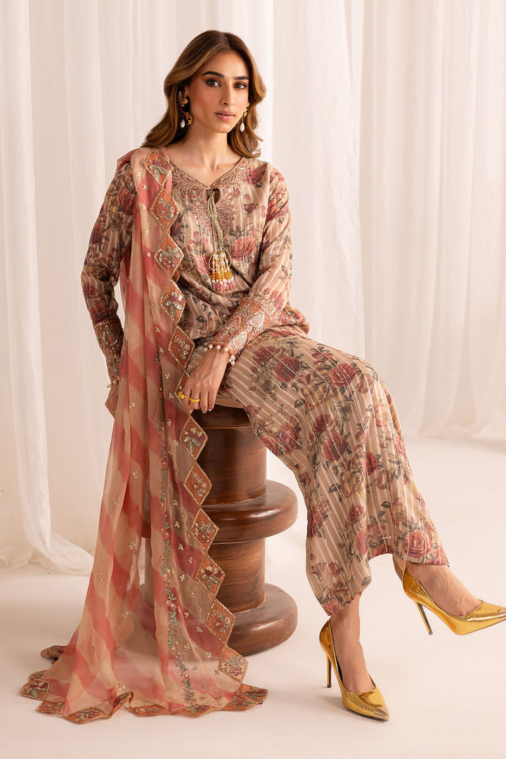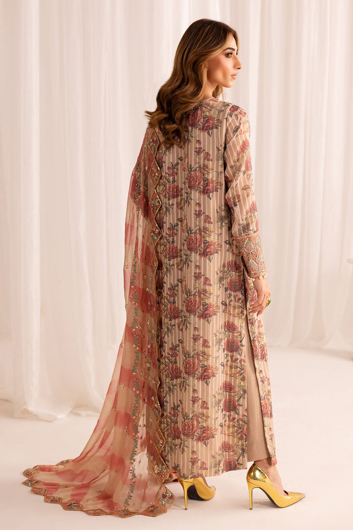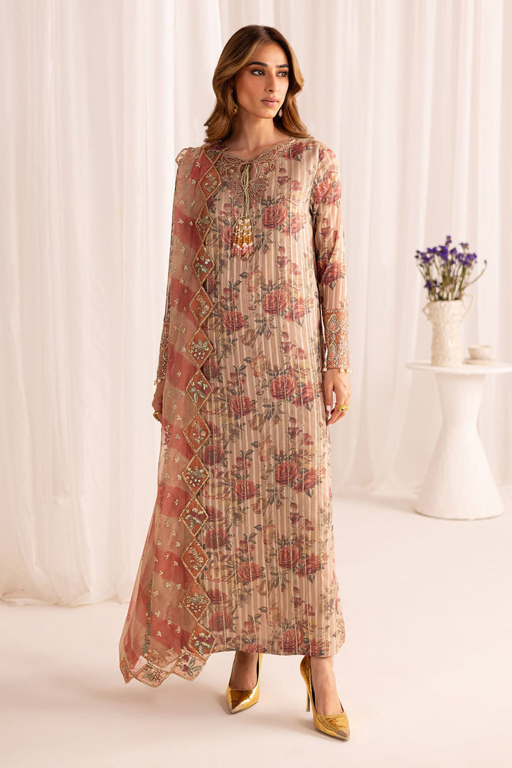 - Embroidered And Printed Jacquard Chiffon Shirt With Attached Inner