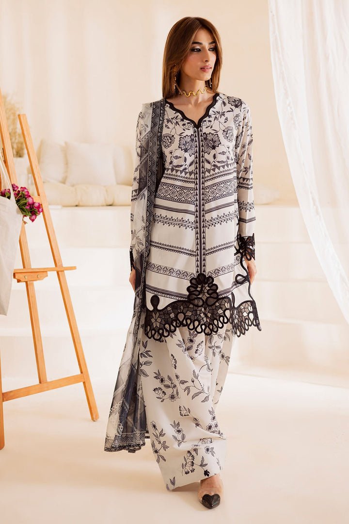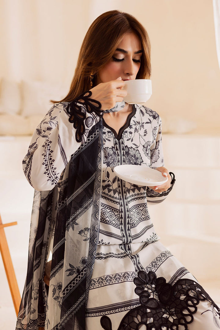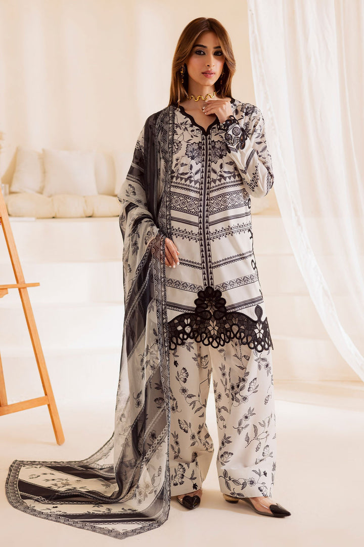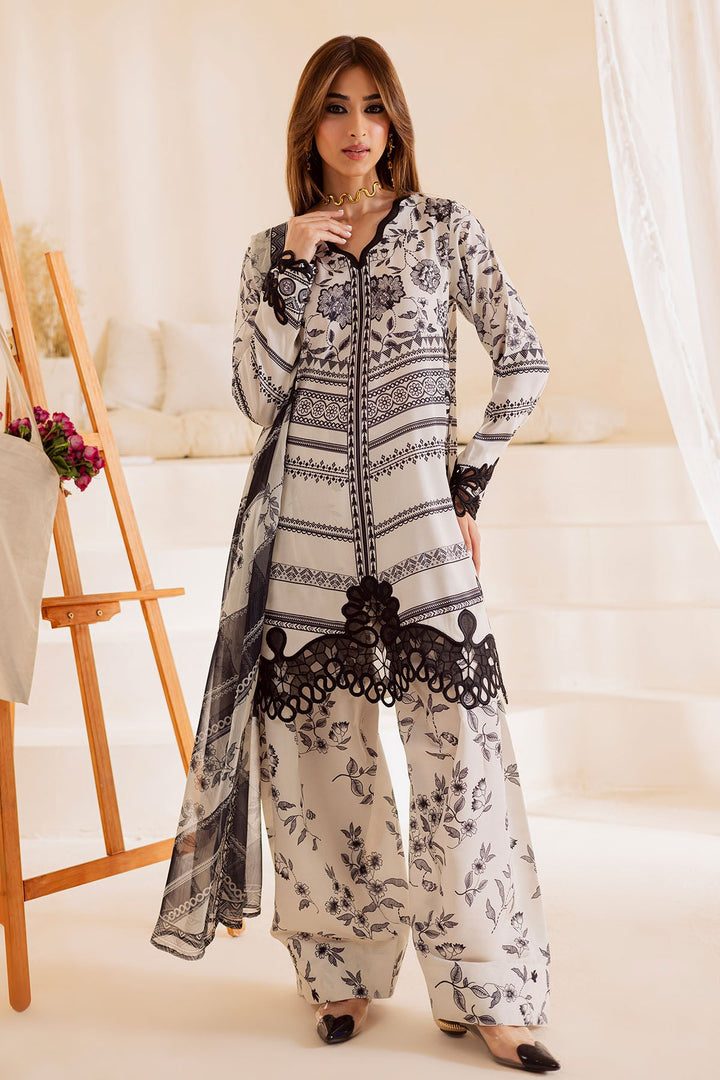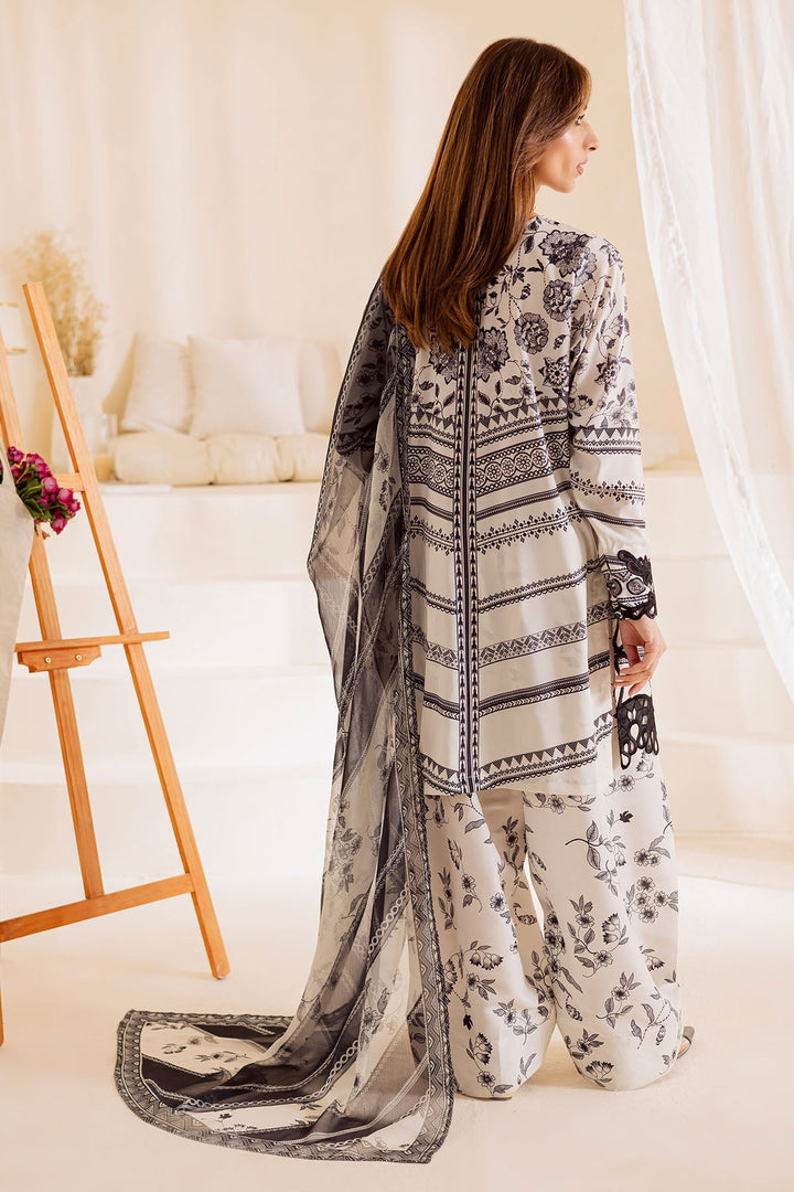 Embroidered And Printed Lawn Silk Shirt Paired With Printed Chiffon Dupatta And Printed Trouser