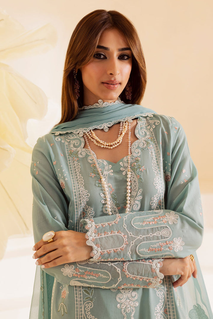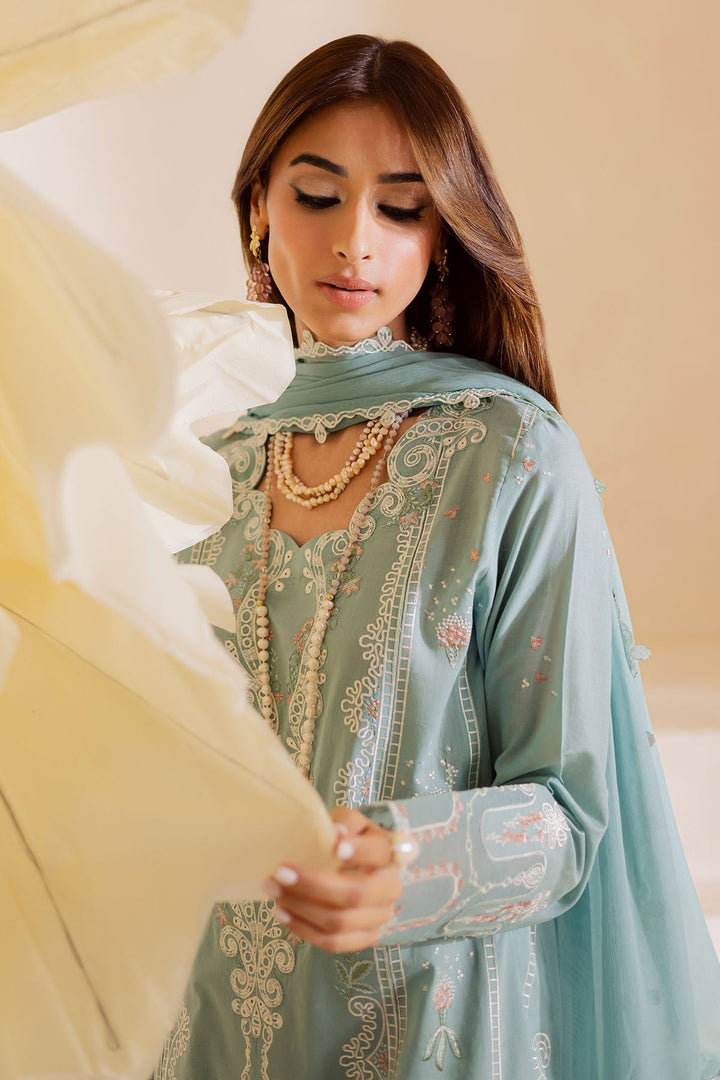 Embroidered Lawn Shirt Paired With Embroidered Chiffon Dupatta And Dyed Cotton Trouser