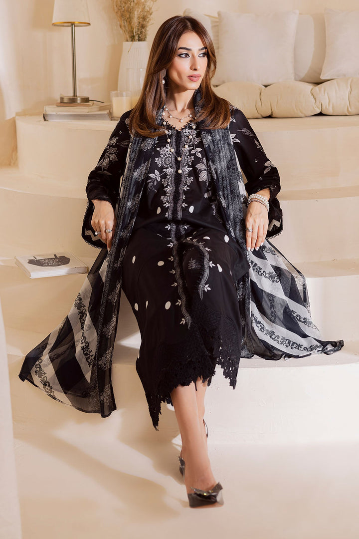 Embroidered And Printed Lawn Shirt Paired With Printed Chiffon Dupatta And Printed Trouser