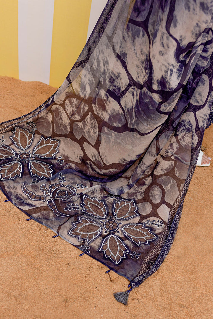 - Embroidered Laser Cut And Printed Chiffon Dupatta